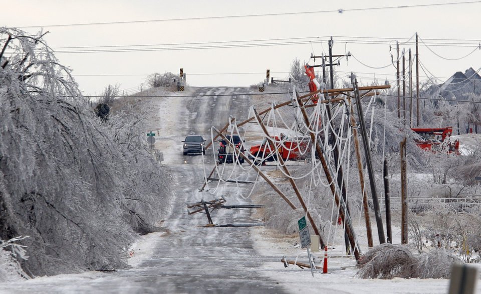 Downed power lines from ice storm in Oklahoma. Photo from Oklahoman.com